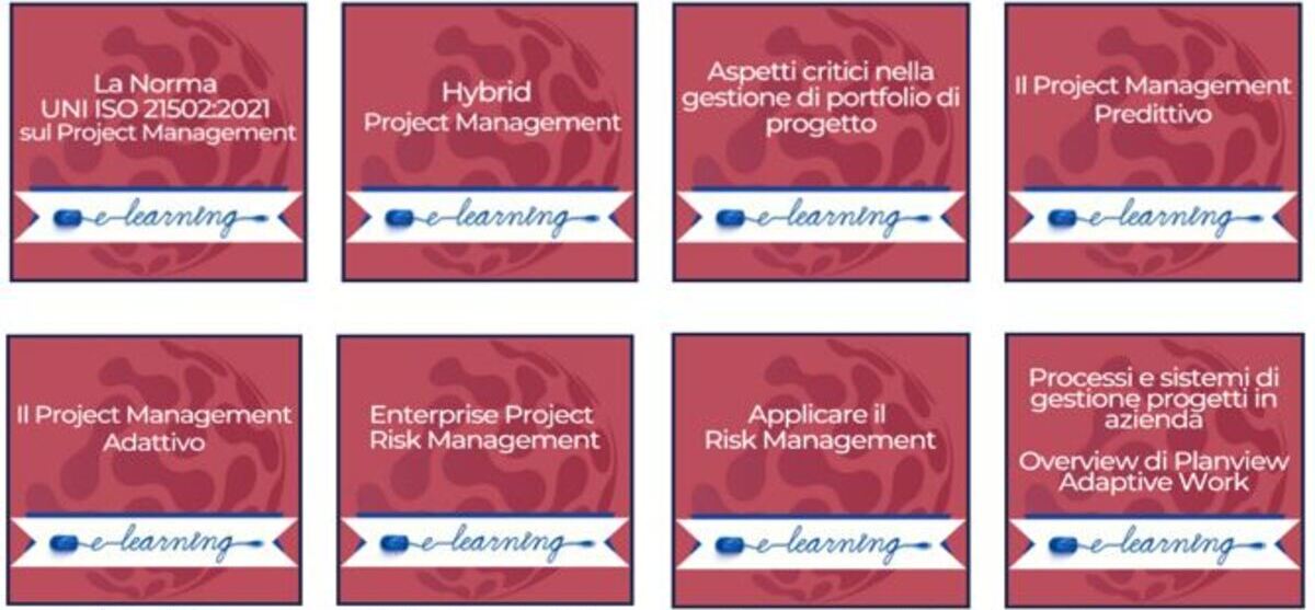 Questo pacchetto di 8 Mini Corsi e-learning sul Project Management, tratti da workshop tenuti da professionisti altamente qualificati, comprende: